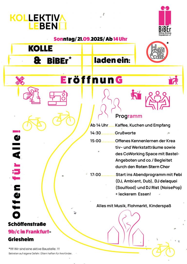 Anmietung der Räume voraussichtlich ab dem 01.05.2025. Bei Interesse oder Rückfragen: info@kolle-frankfurt.de